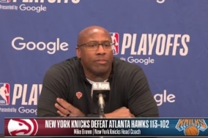 体育资讯4月19日讯 NBA季后赛东部首轮G1,尼克斯113-102战胜老鹰。赛后,尼克斯主帅迈克·布朗接受媒体采访,以下为采访全文。